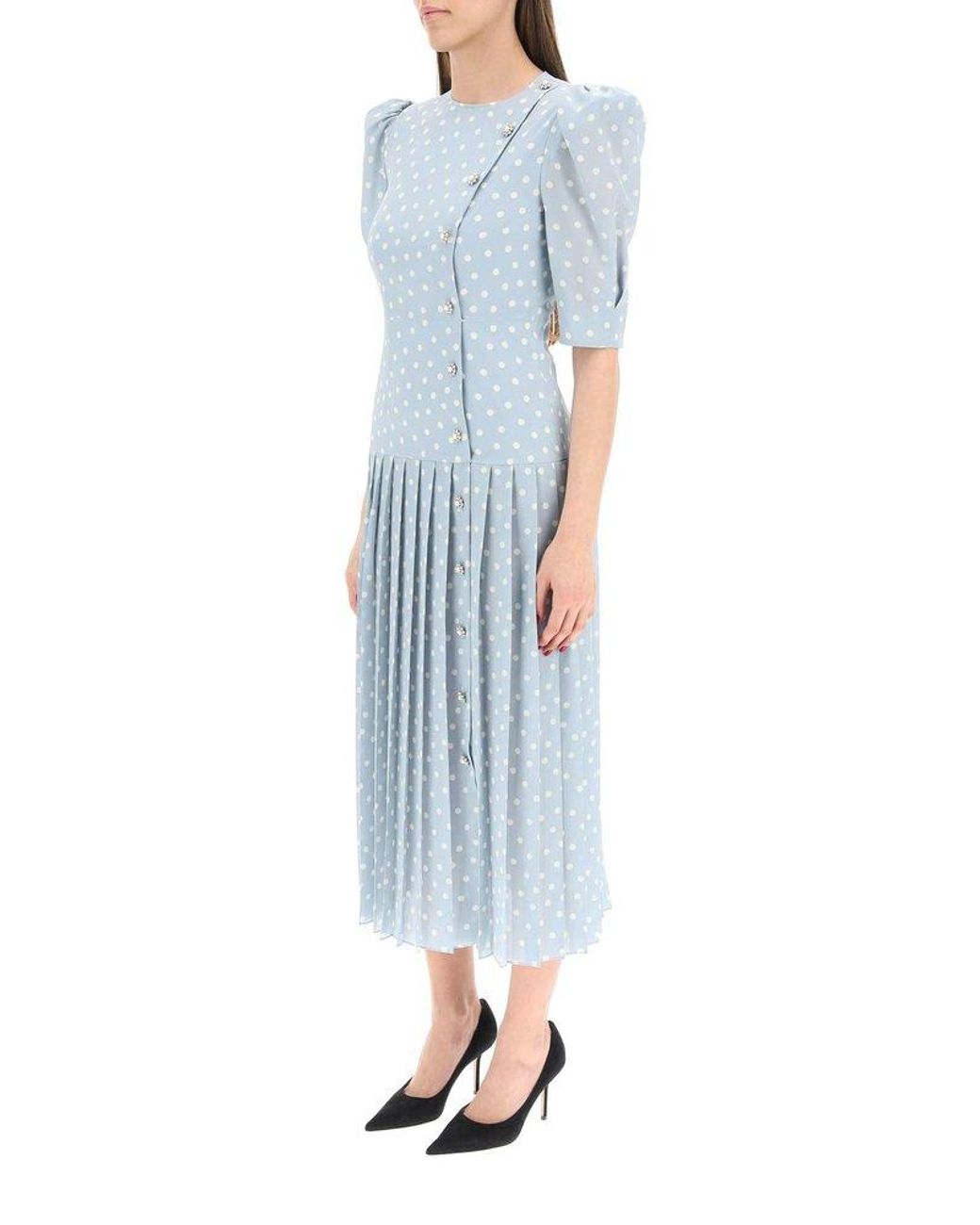 Alessandra Rich Polka Dot Print Pleated Dress In Blue Lyst Australia