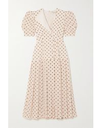 Alessandra Rich Broderie Anglaise Trimmed Polka Dot Silk Crepe De Chine Midi Dress Net A Porter